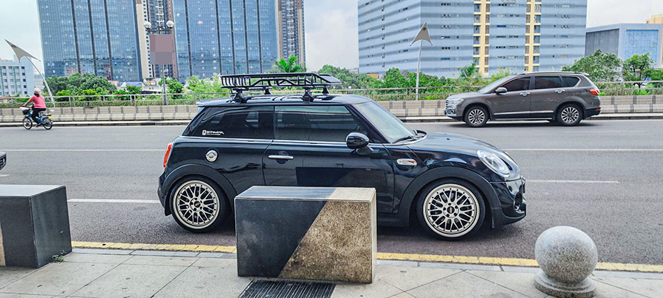 mini coupe F56 安装纽曼305S车顶行李架,贴合度完美。