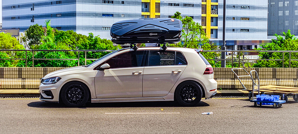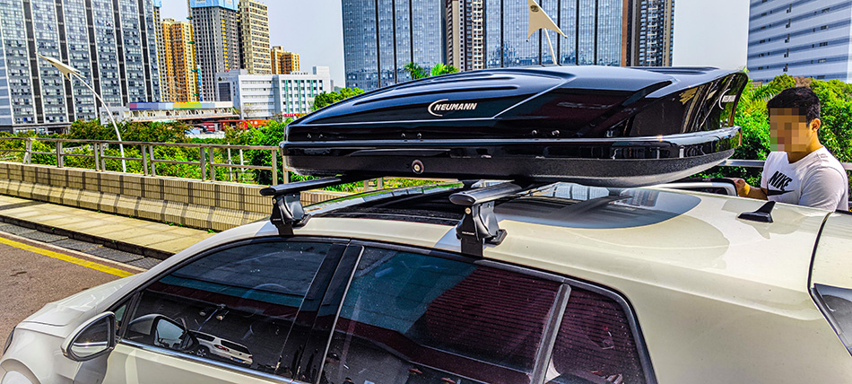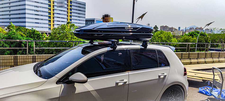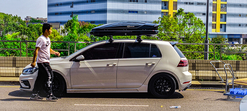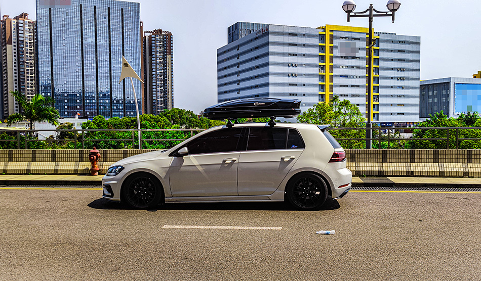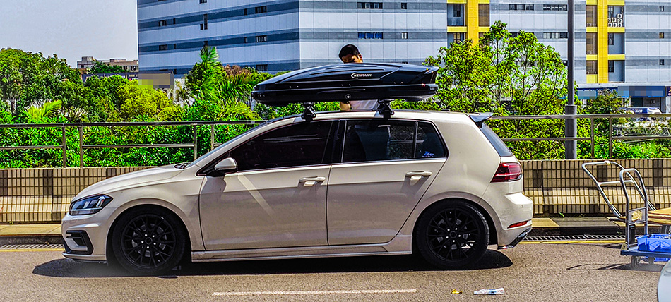 大众高尔夫7安装纽曼305s车顶行李架+C5B车顶行李箱黑色