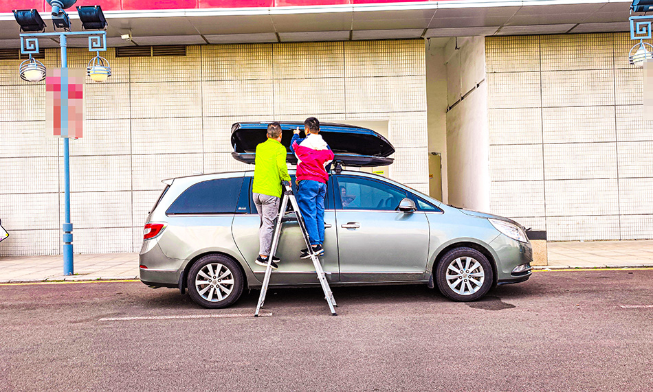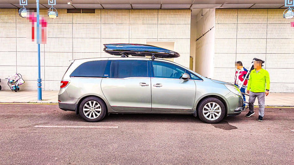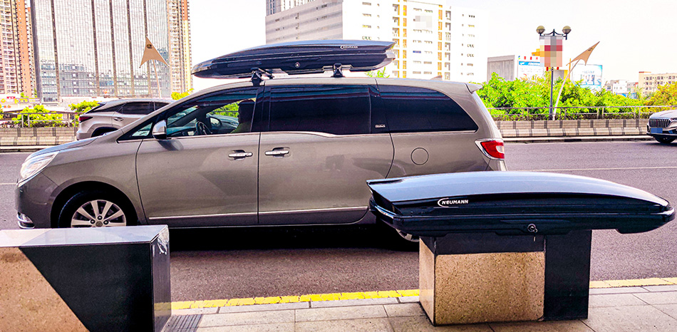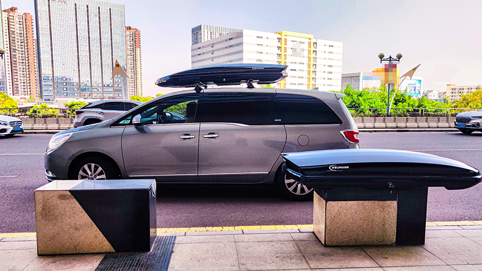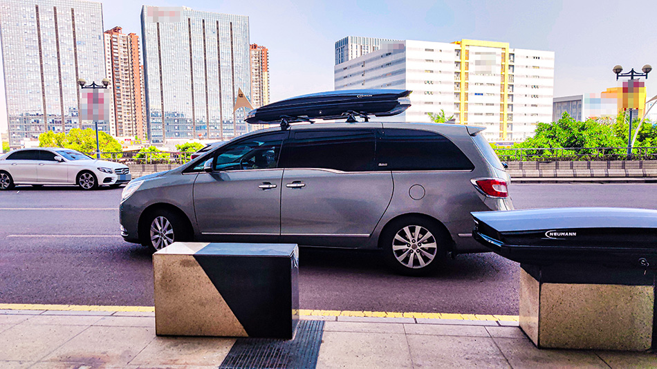 别克GL8胖头鱼安装纽曼305s车顶架+K6车顶行李箱,无损安装,效果很好