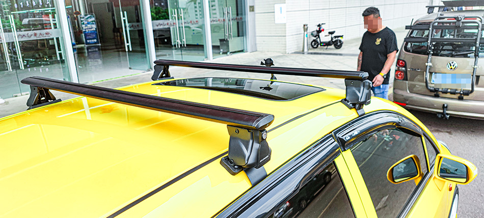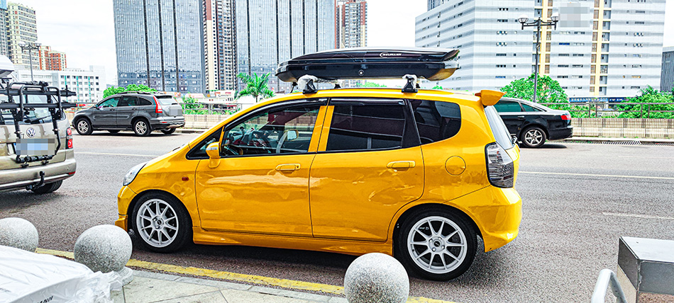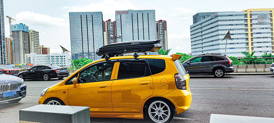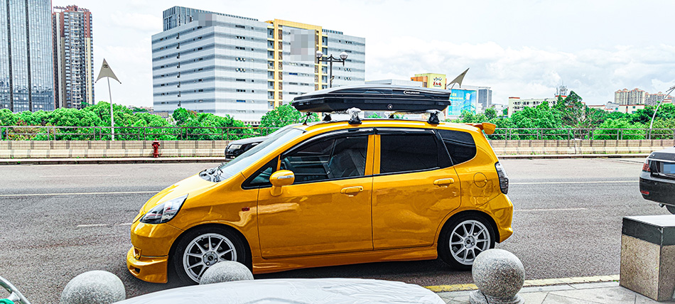 本田飞度安装纽曼305s车顶架+C5A车顶箱黑色 ,安装效果真好看。