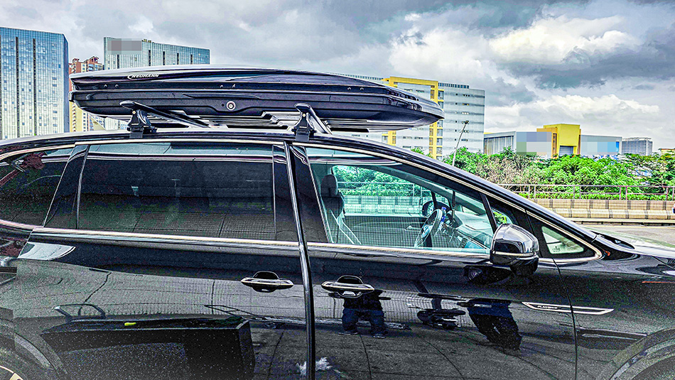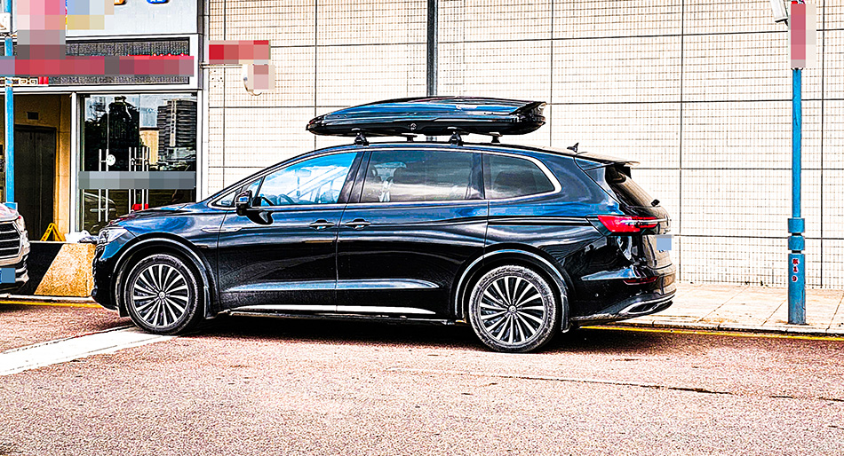 大众威然安装纽曼305s车顶架+K6车顶箱,无损安装,安装效果很好