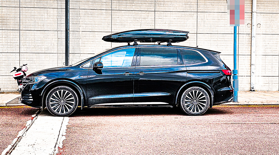 大众威然安装纽曼305s车顶架+K6车顶箱,无损安装,安装效果很好。