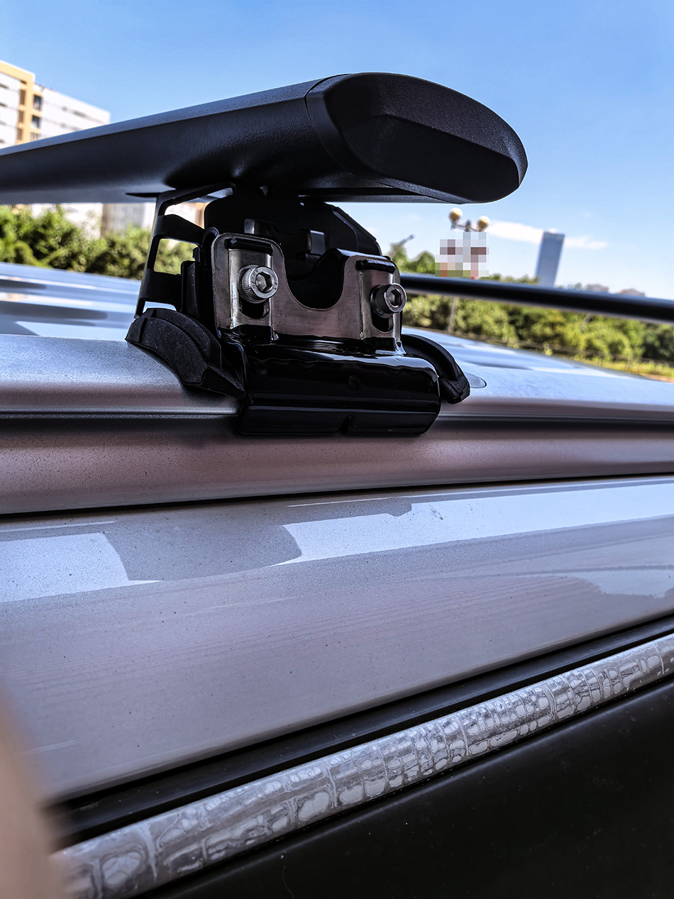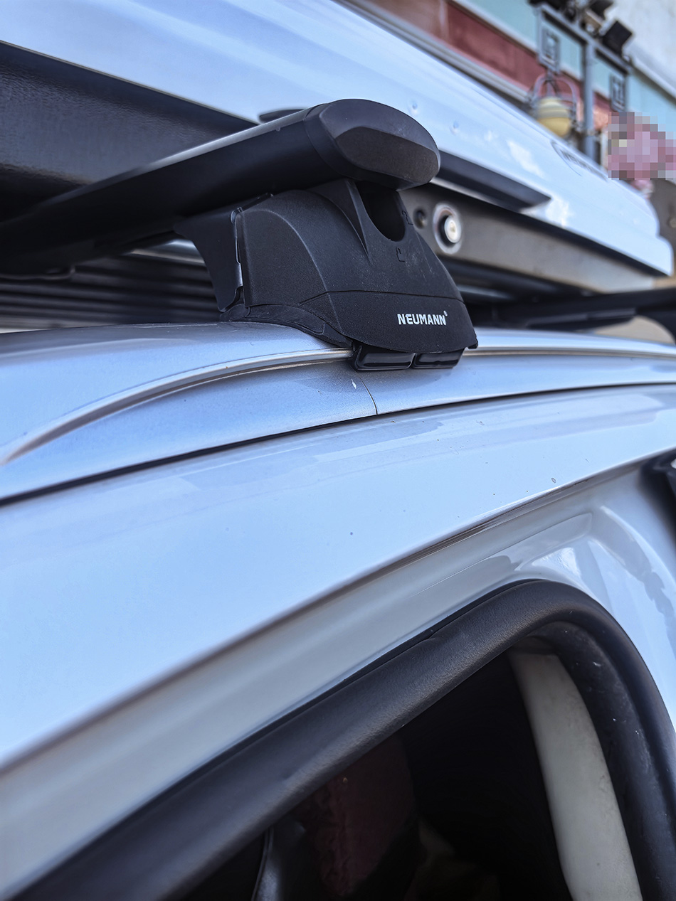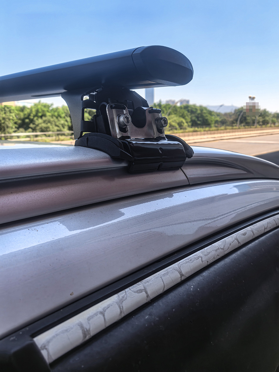 三菱欧蓝德安装纽曼307s车顶架+C5A车顶箱白色,安装效果很好,横杆承载性强