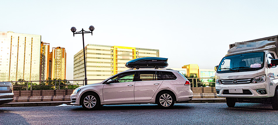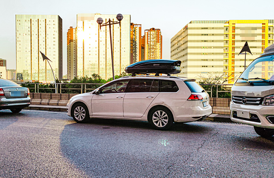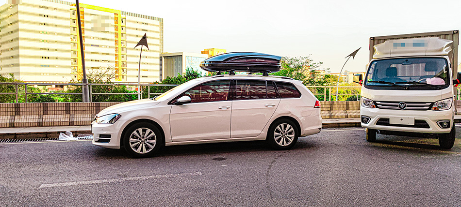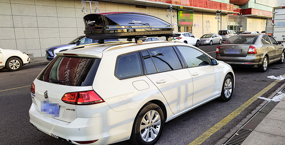 高尔夫旅行版安装纽曼307车顶架+C5C车顶箱黑色,无损安装,承载性强