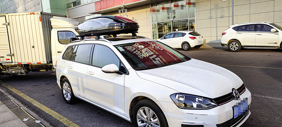高尔夫旅行版安装纽曼307车顶架+C5C车顶箱黑色,无损安装,安装效果好
