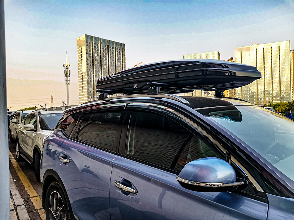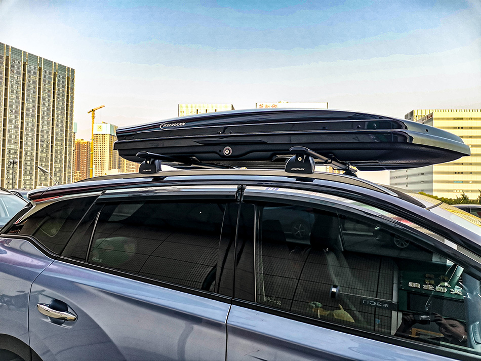 吉利几何安装纽曼307s车顶架+G5车顶箱黑色,一套质感超好,承载性很好