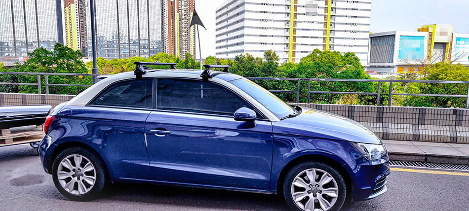 奥迪Q1选择安装纽曼305s车顶架+C5A车顶箱黑色,车顶箱长度174,完美搭配