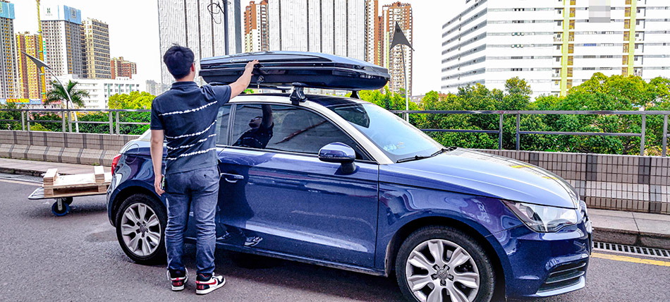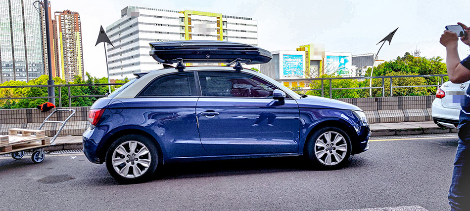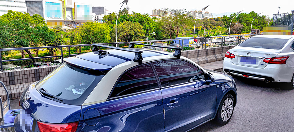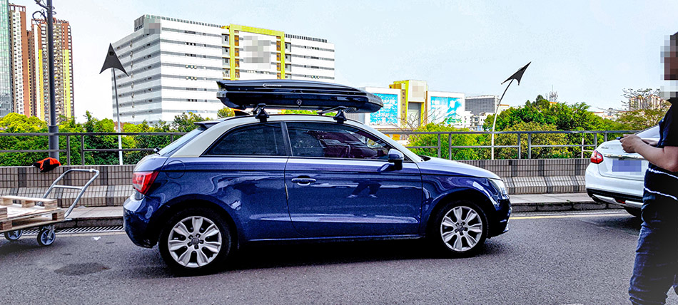 奥迪Q1选择安装纽曼305s车顶架+C5A车顶箱黑色,车顶箱长度174