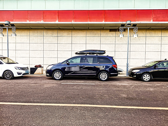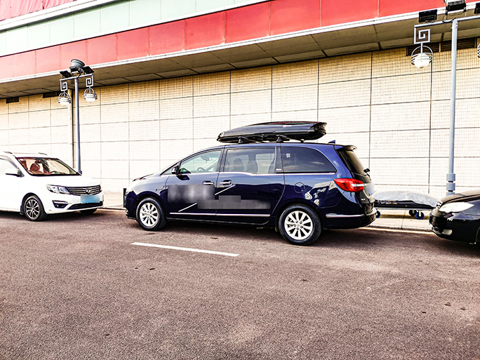 别克GL8搭载纽曼305s车顶架+K6车顶箱黑色,车顶箱长度230cm,搭配度强