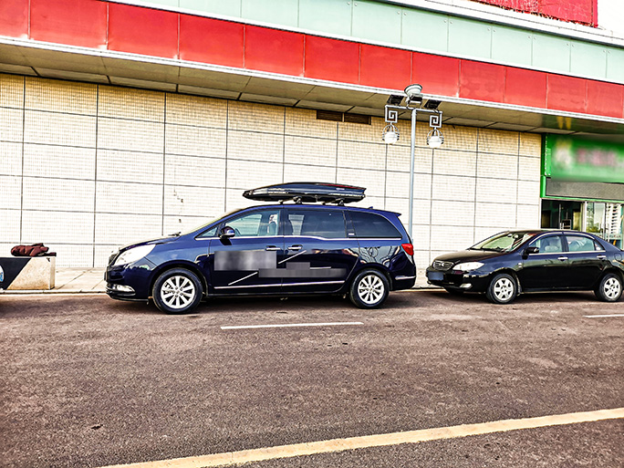 别克GL8搭载纽曼305s车顶架+K6车顶箱黑色,车顶箱长度230cm