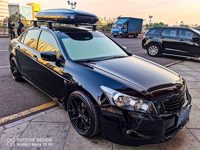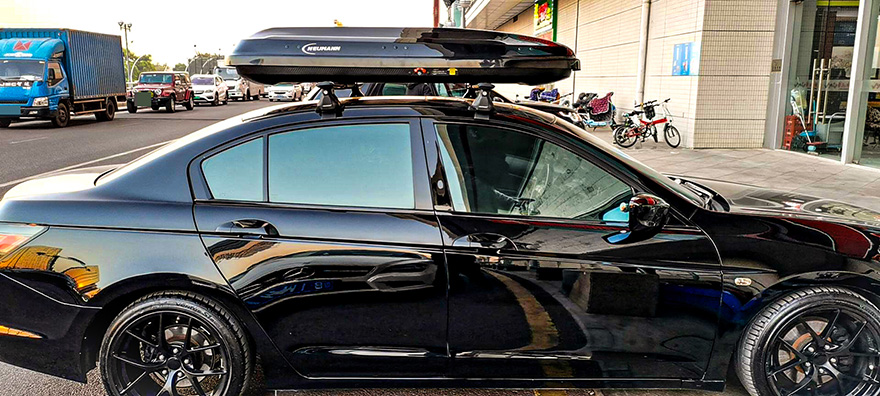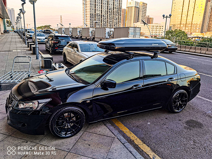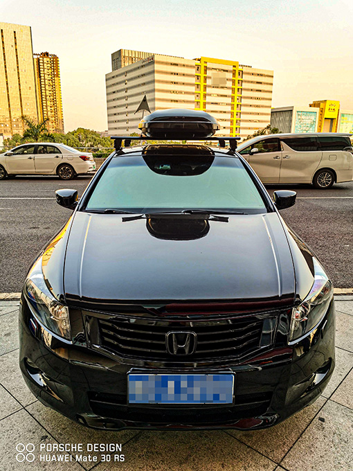 本田雅阁安装纽曼305s车顶架+D5车顶箱黑色,一整套搭配质感很好。