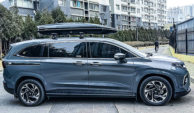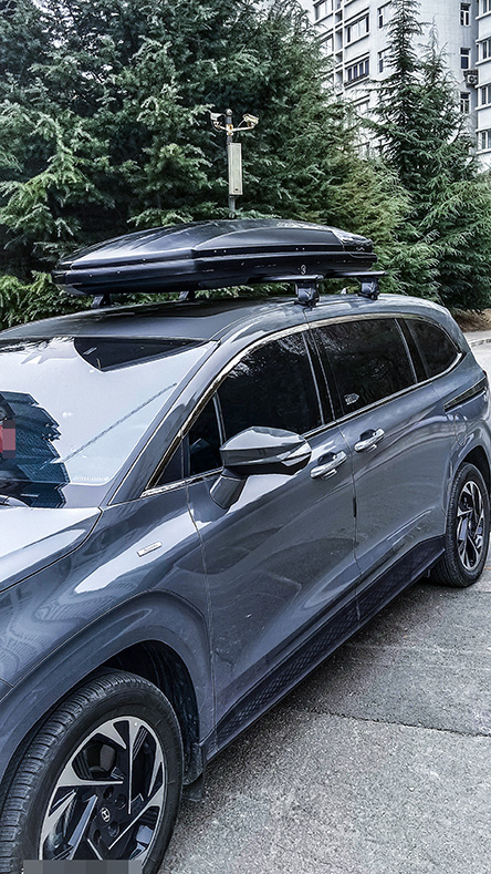 现代库斯图搭载纽曼305s车顶架+K6车顶箱黑色