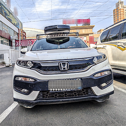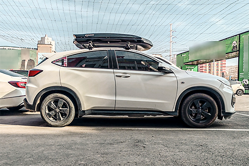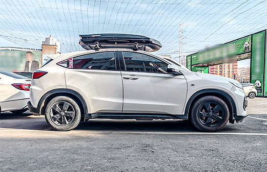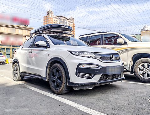 本田XRV搭载纽曼305s车顶架+C5A车顶箱黑色,安装效果客户非常满意