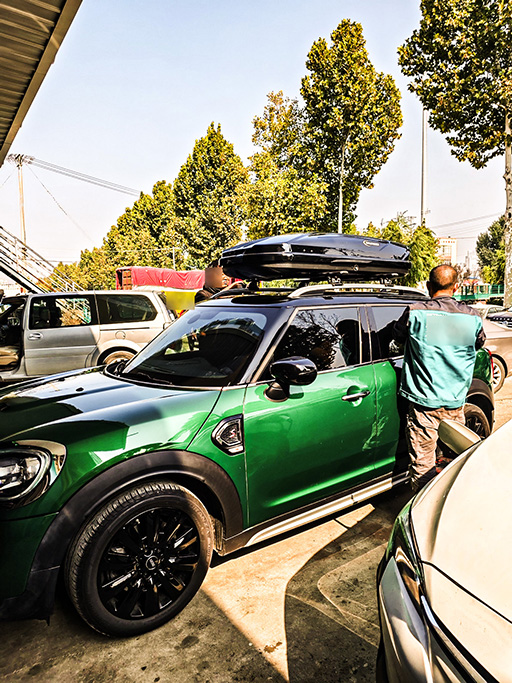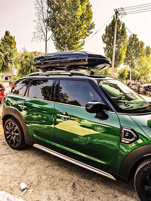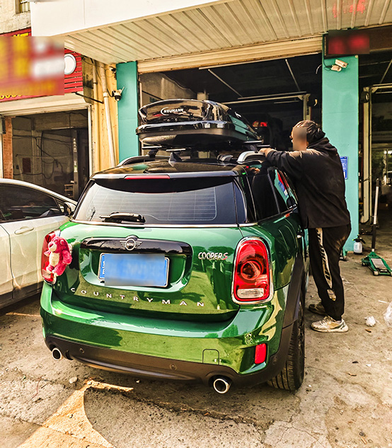 mini COUNTRYMAN 安装纽曼307s车顶架+C5B车顶箱黑色,安装效果客户很满意,非常帅气又实用。
