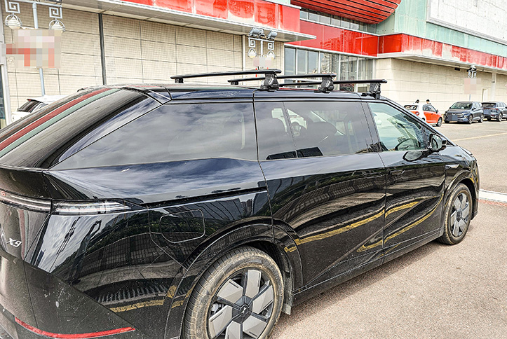 小鹏X9安装纽曼305s车顶架,小鹏X9也可以搭载三根横杆,可承载车顶帐篷。