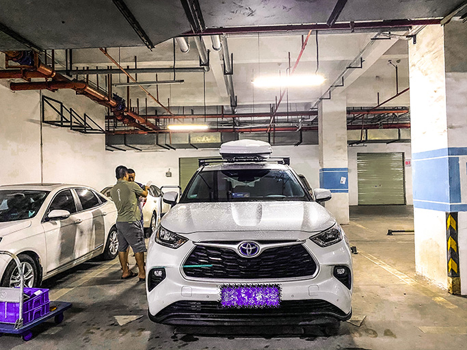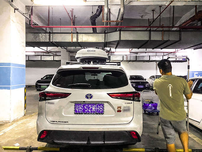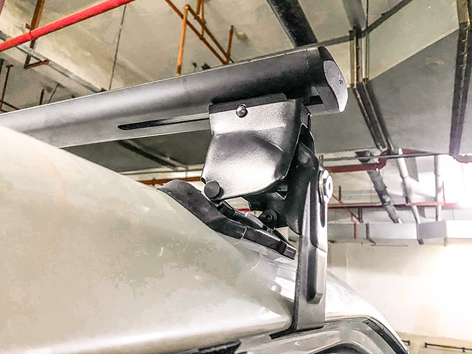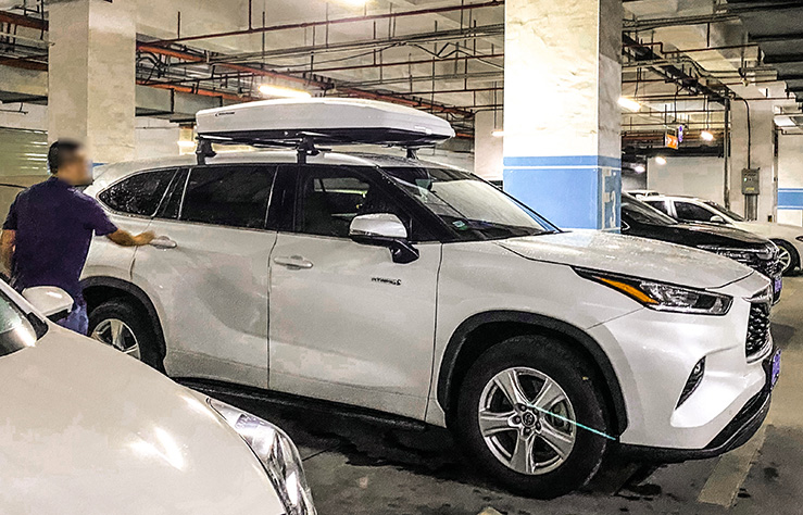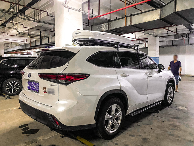 丰田汉兰达安装纽曼305s车顶架+G5车顶箱白色,横杆贴合性好。