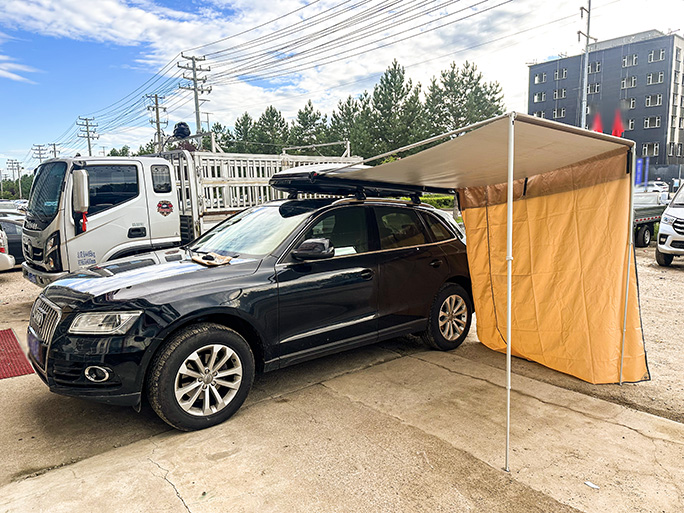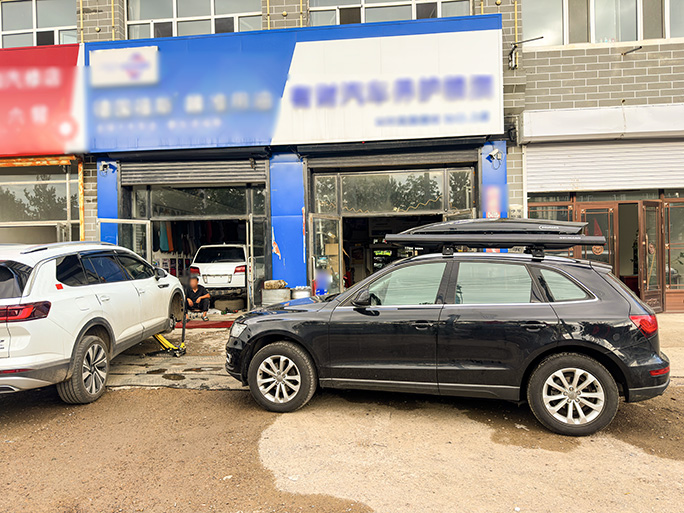 中型SUV奥迪Q5安装纽曼一整套装备,307s车顶架+G5车顶箱+车边账,安装霸气。
