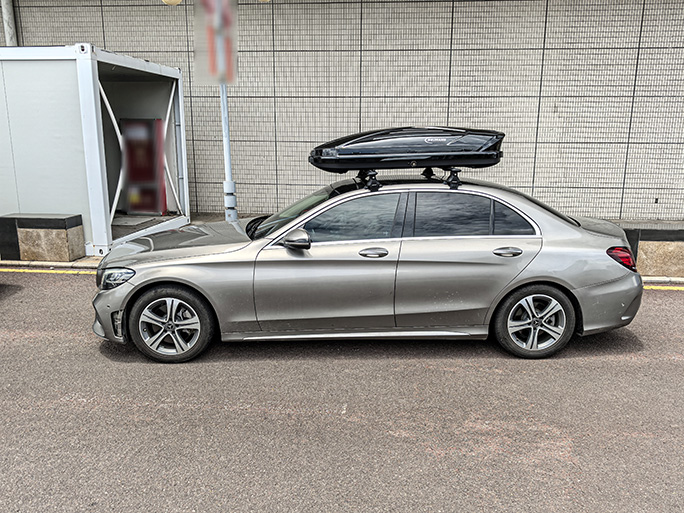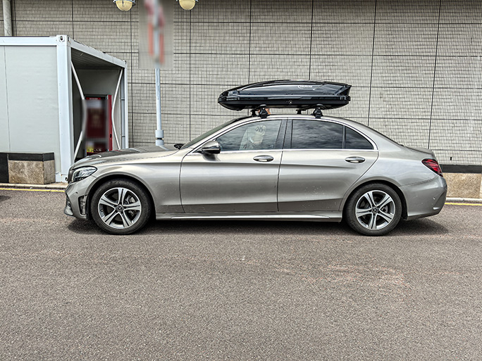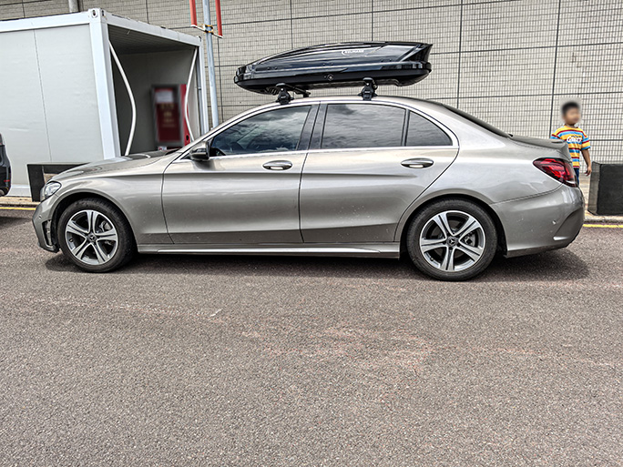 轿车奔驰C260安装案例,安装纽曼305s车顶架+C5B款车顶箱,专车专用车顶架超贴合。