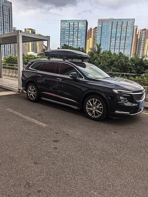 别克昂科旗安装案例,纽曼307s车顶架+G5车顶箱黑色。昂科旗专车专用车顶架,搭配流线型超好的车顶箱,颜值实用双并存。