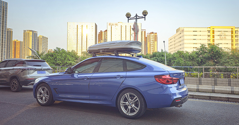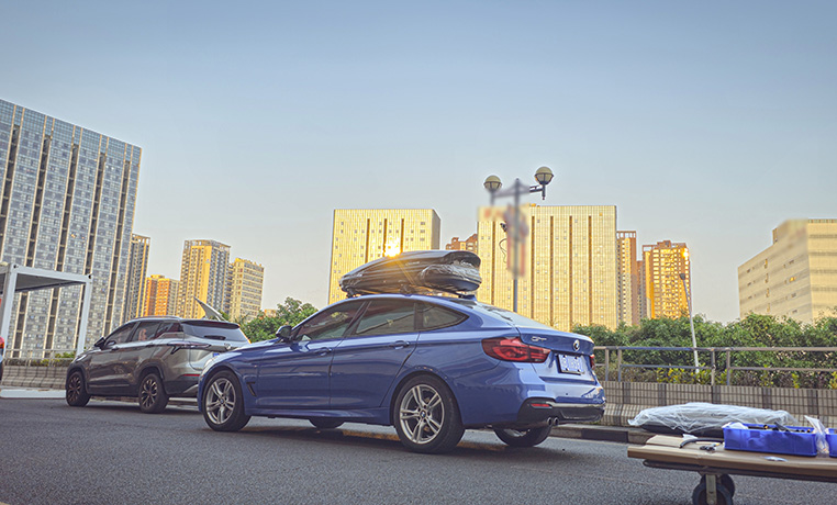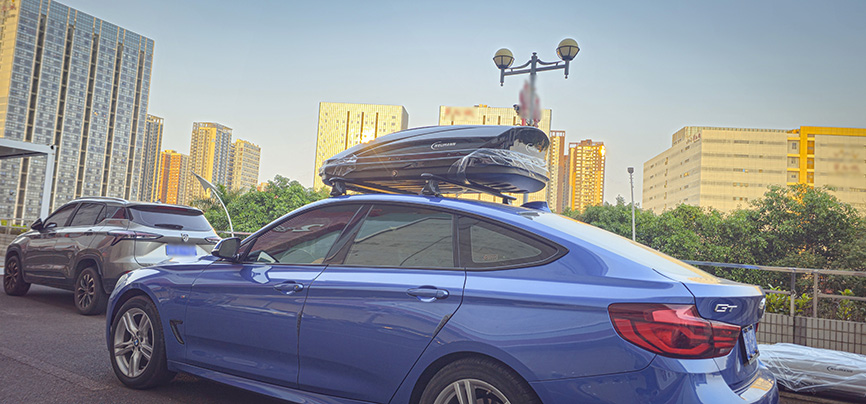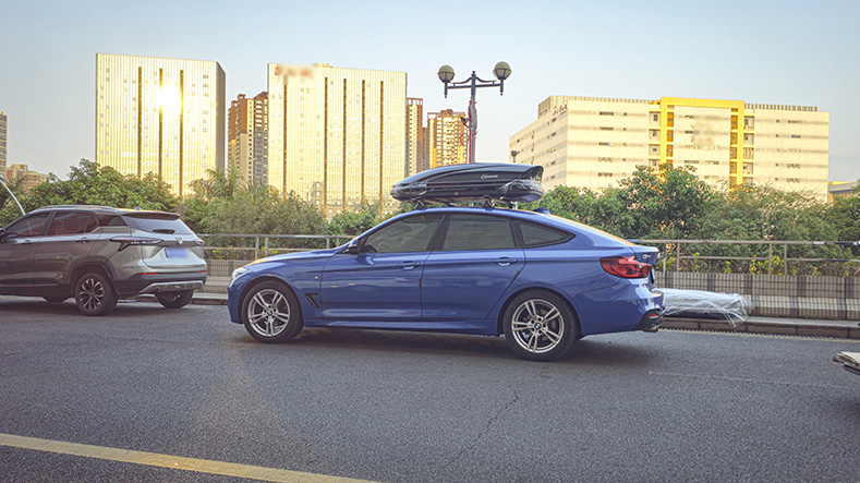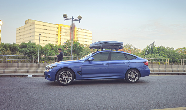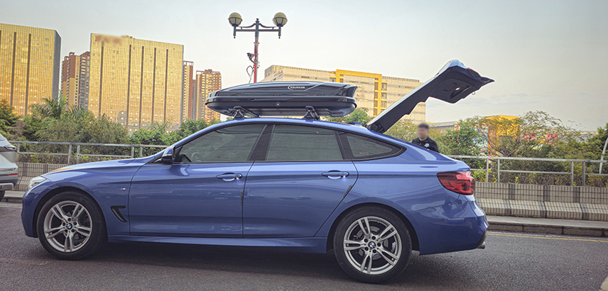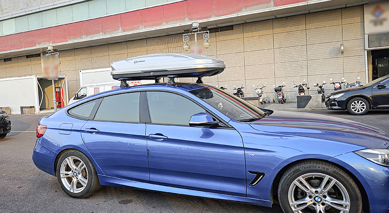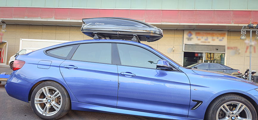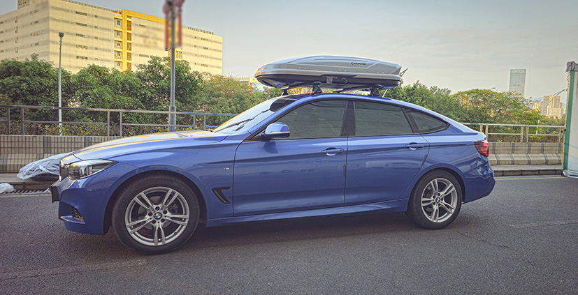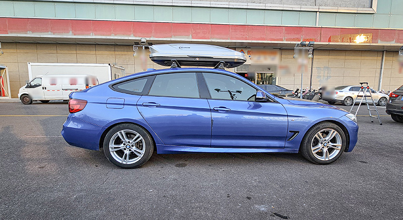 宝马3系GT安装纽曼305s车顶架+C5C跟C5B两款不同型号车顶箱安装效果。
