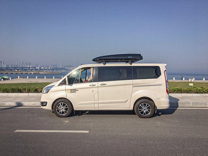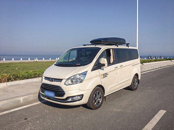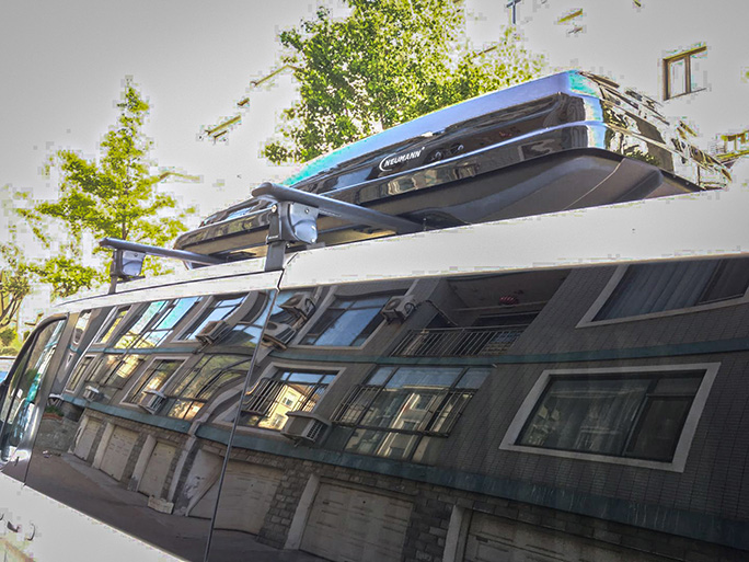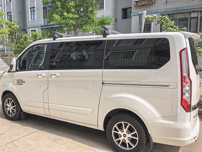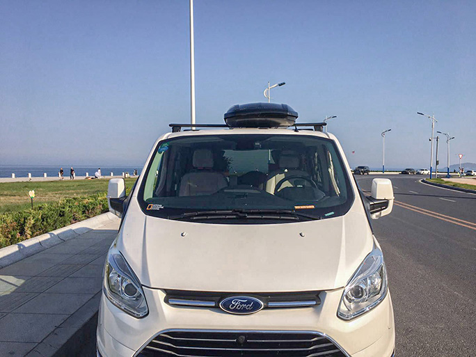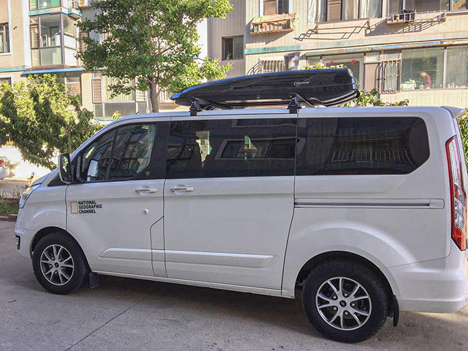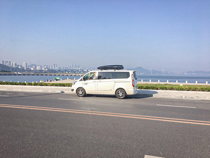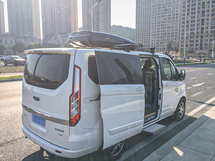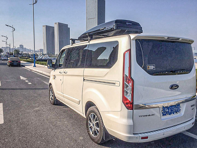 商务车福特途睿欧安装案例,纽曼车顶架305s车顶架,贴合度非常完美,F5车顶箱,加大储物空间。