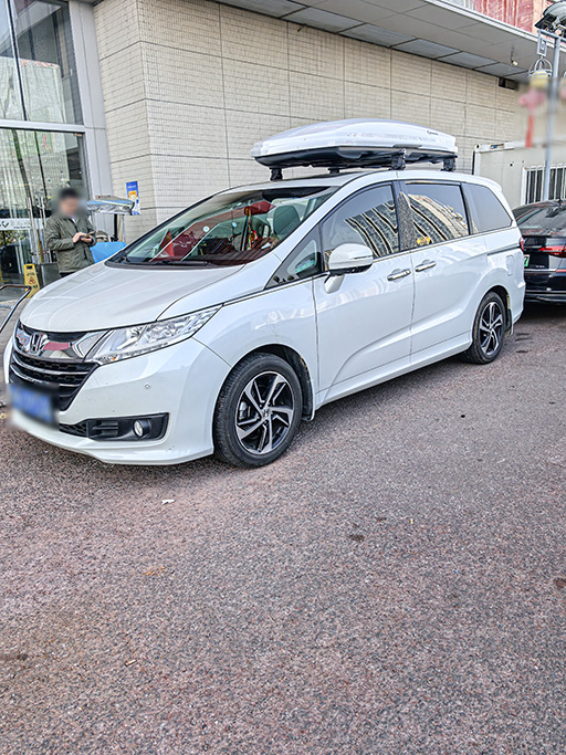 本田奥德赛安装案例,纽曼305s车顶架+K6车顶箱白色,这个颜色搭配也好看的。