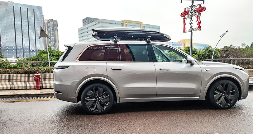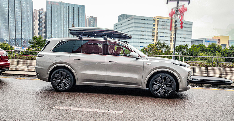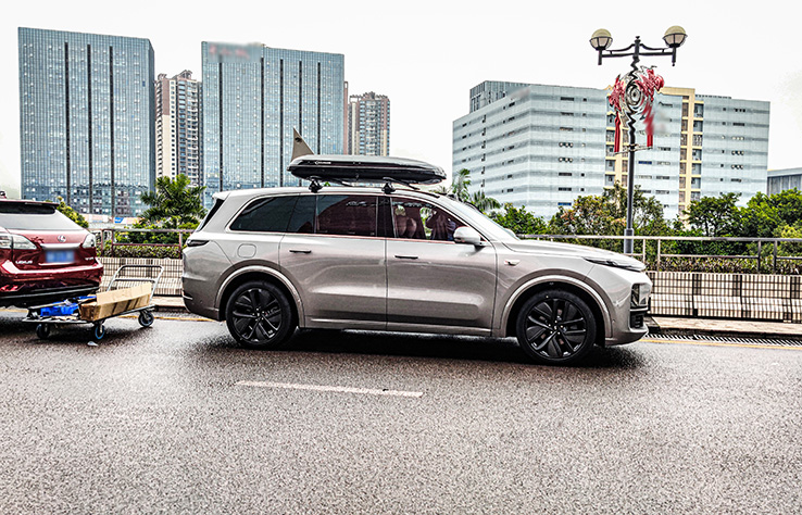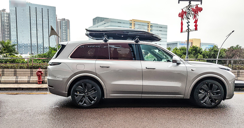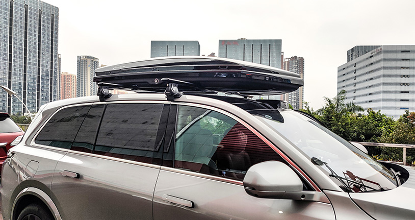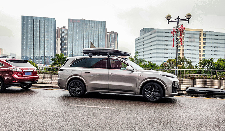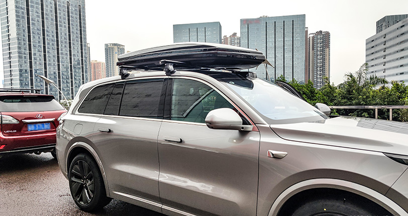 理想L9安装案例,纽曼305s车顶架+K6车顶箱加长款,安装协调,好品质找纽曼。