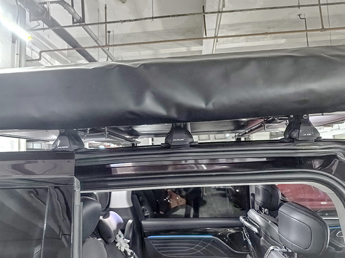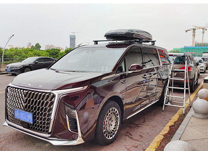上汽大通G90安装案例,纽曼305s车顶架+F5车顶箱,可搭载车顶帐篷。承载性好专车专用横杆。