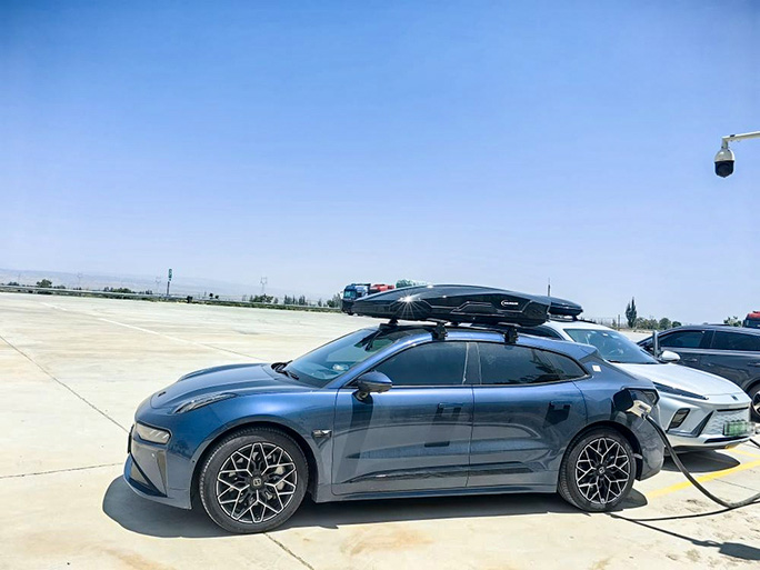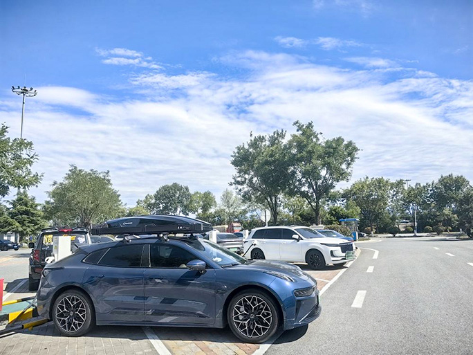 来自客户镜头下的照片极氪001安装纽曼305s车顶架+G5B车顶箱,跟美景绝绝子。