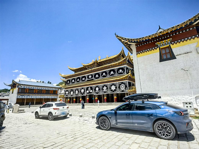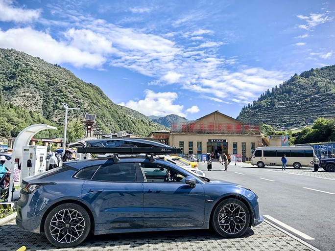 来自客户镜头下的照片极氪001安装纽曼305s车顶架+G5B车顶箱,跟美景绝了。