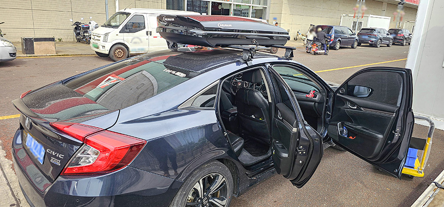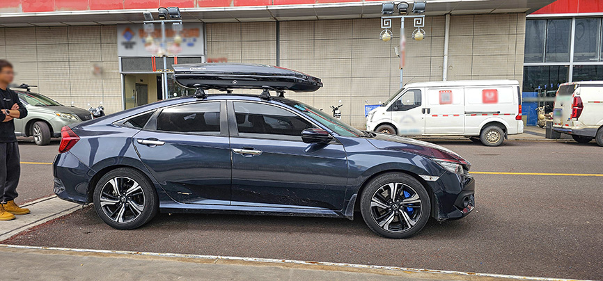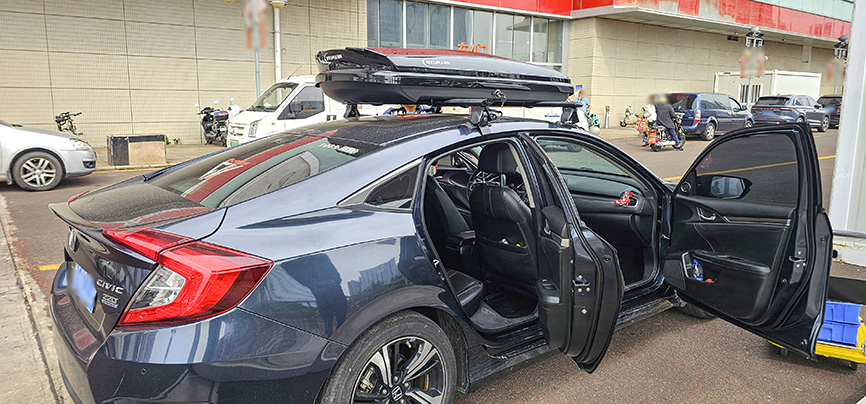 十代本田思域安装纽曼305s车顶架+C5A车顶箱,专车专用车顶行李架。