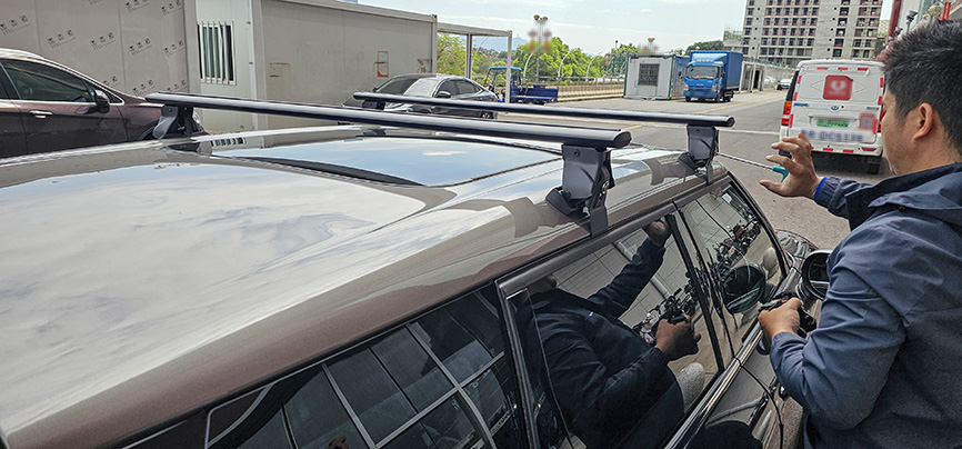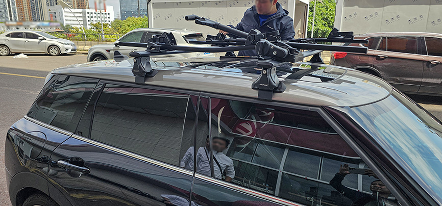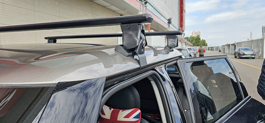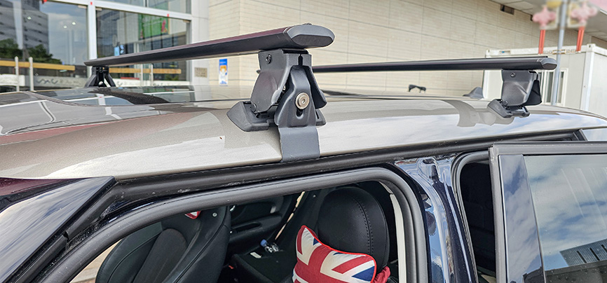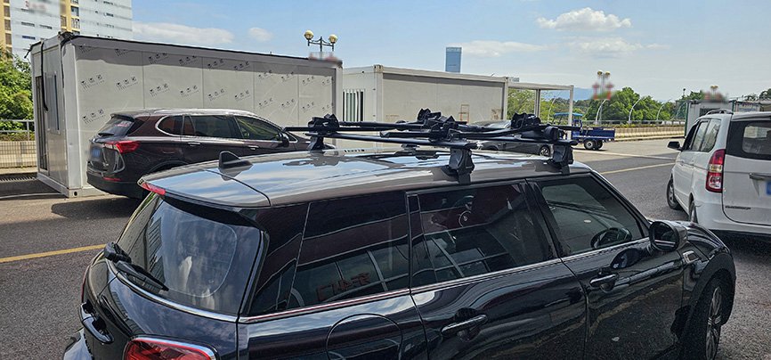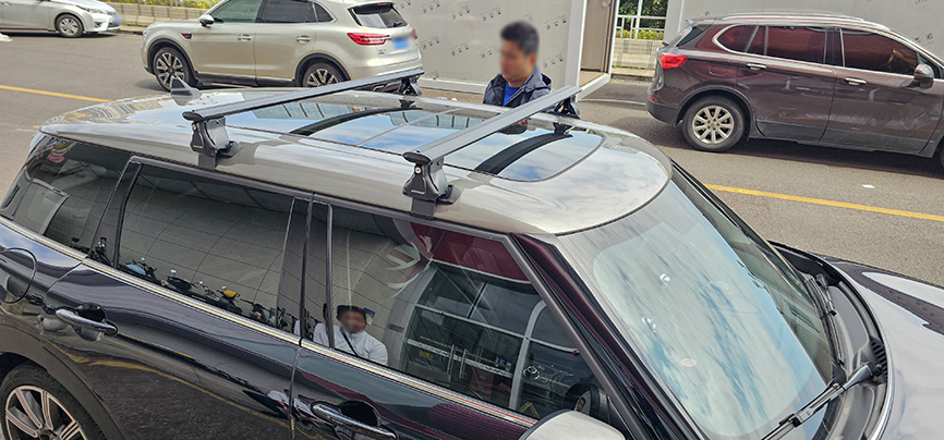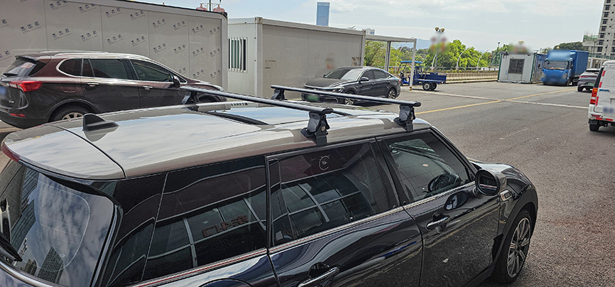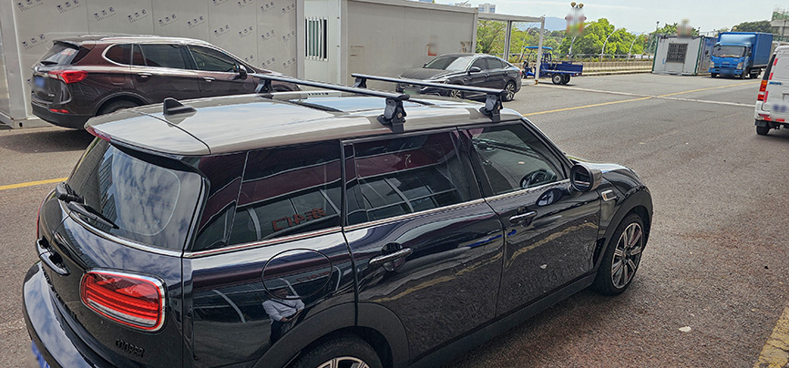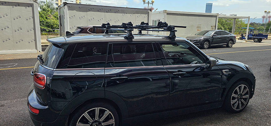 宝马mini F54 安装案例,纽曼305s车顶架+自行车架。