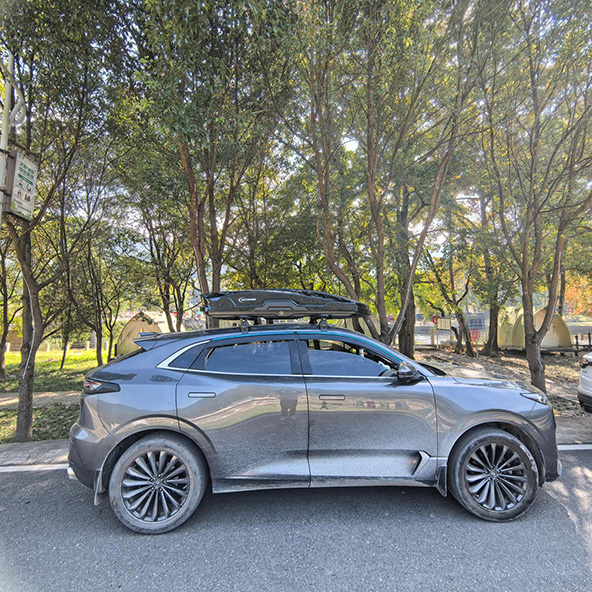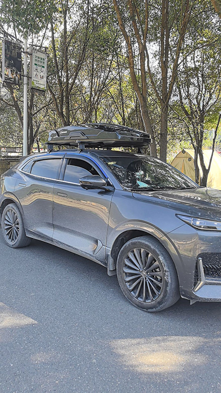 长安UNIK安装案例,纽曼305s车顶架专车专用款,G5B机甲风车顶箱。