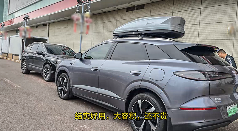 比亚迪海狮06安装案例,纽曼307s车顶架+C5C车顶箱。专车专用车顶行李架银色车顶箱大容积超好用。