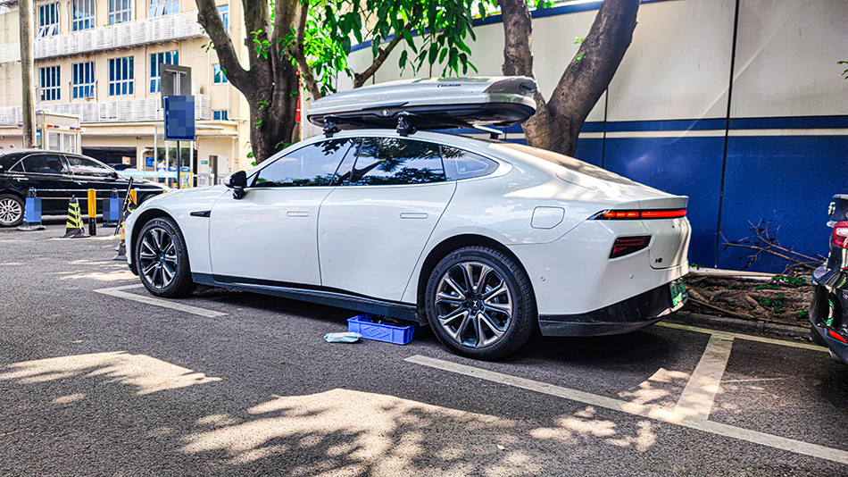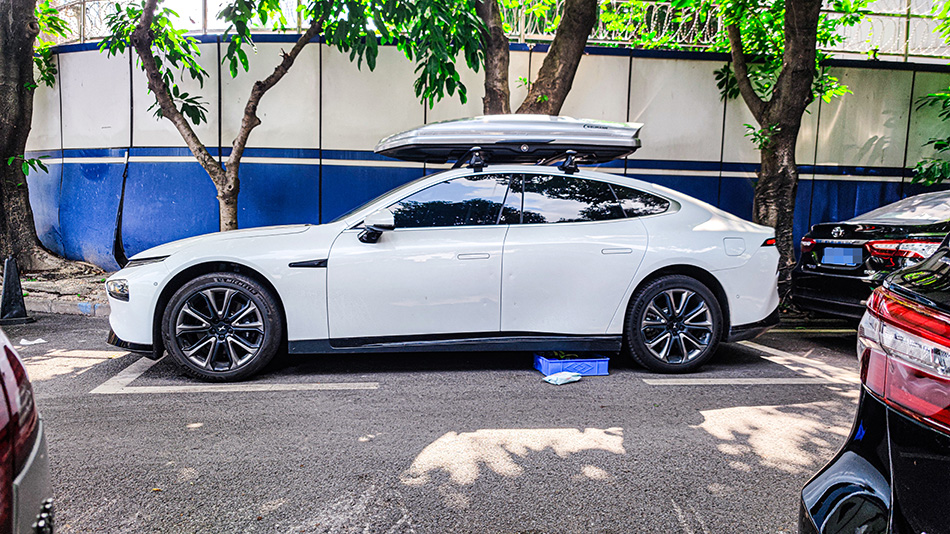 小鹏P7安装案例,纽曼305s车顶架无边框车门安装,G5车顶箱,一整套安装效果好,好品质找纽曼。