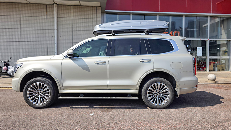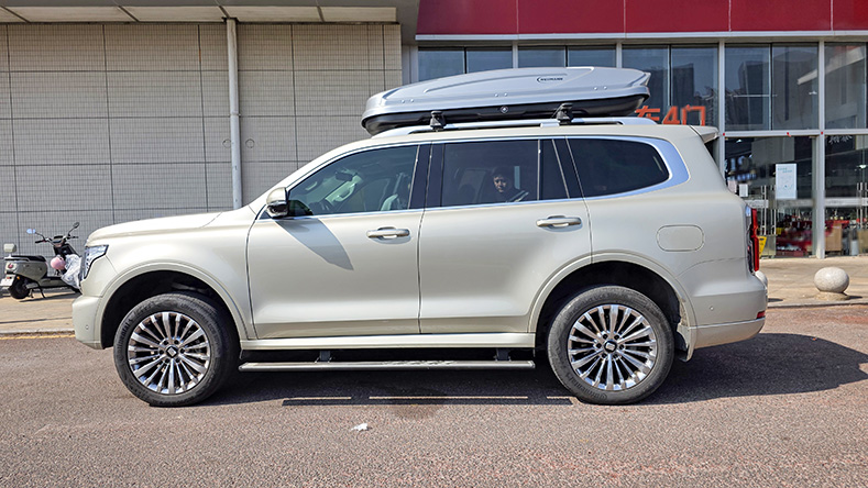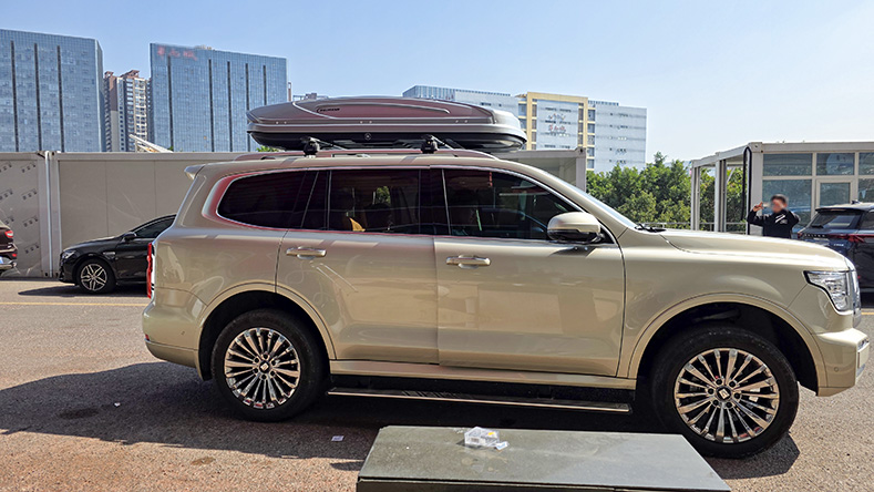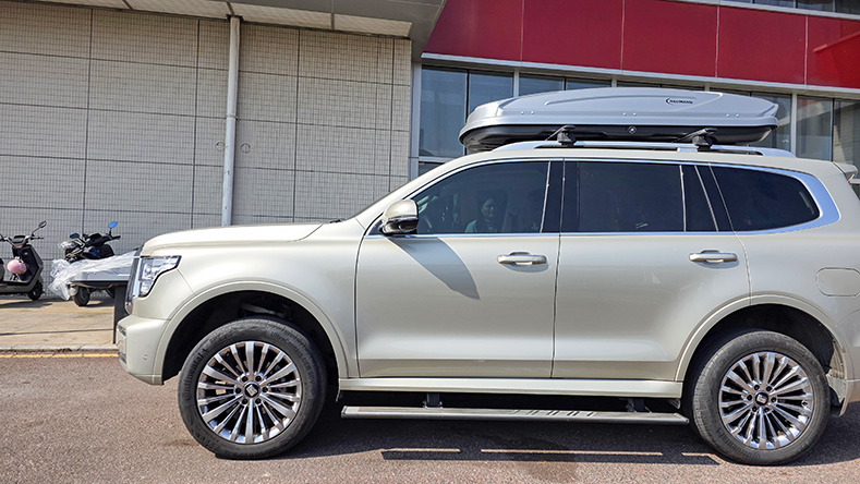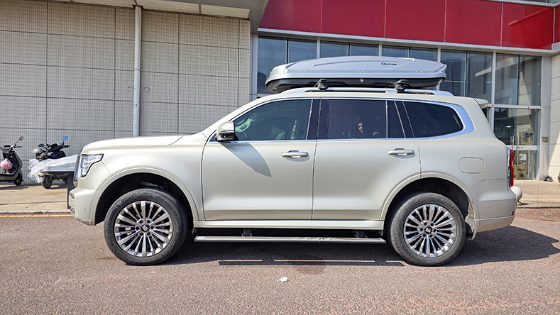 坦克500安装纽曼307s车顶架+H6B车顶箱,专车专用车顶架超大容积车顶箱。