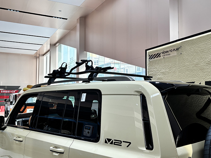 奇瑞icar v27安装案例,纽曼307s车顶架+自行车架,户外出行最佳选择,安装牢固,品质高。