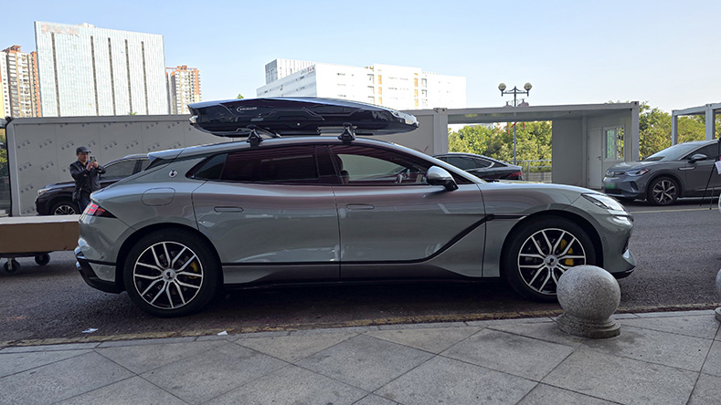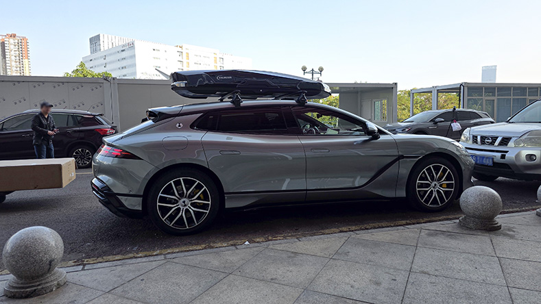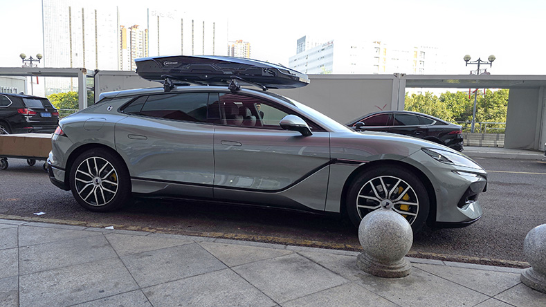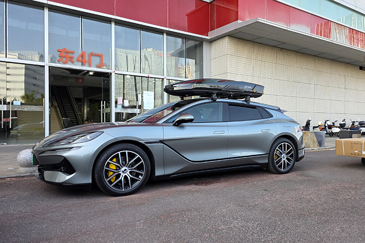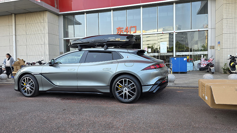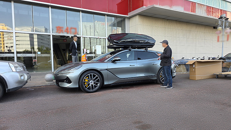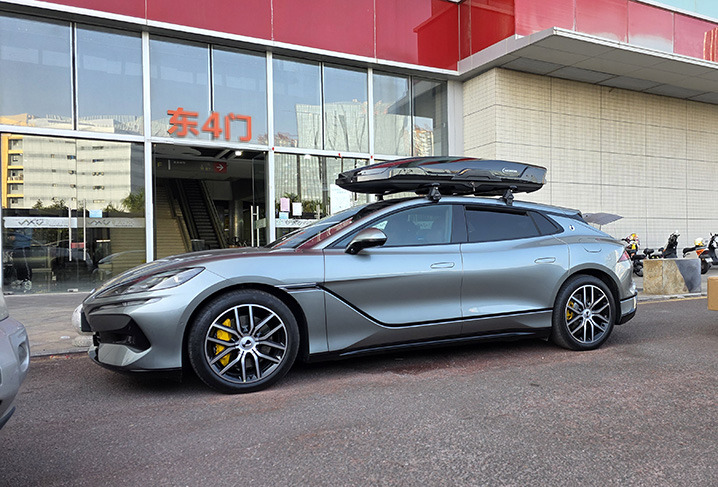 腾势Z9GT安装案例,纽曼305s车顶架+K6B机甲风车顶箱,超大容积安装系统高品质。