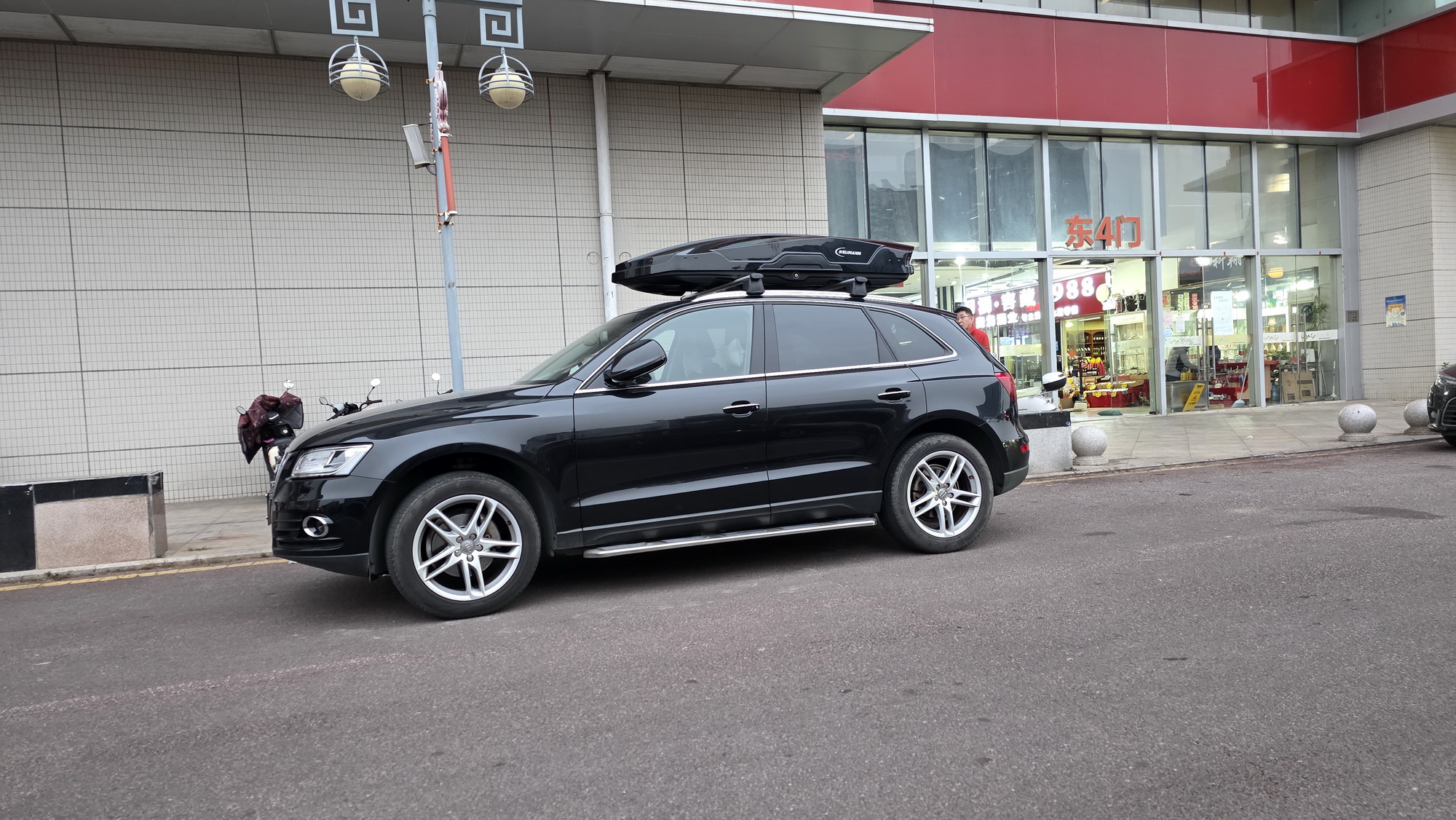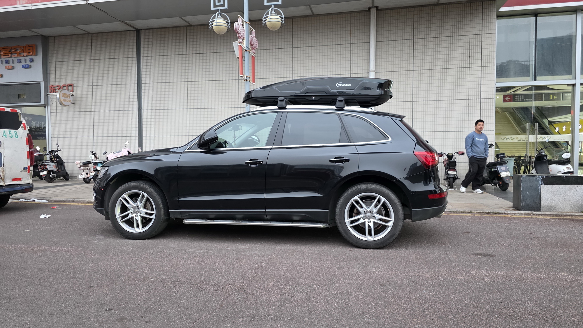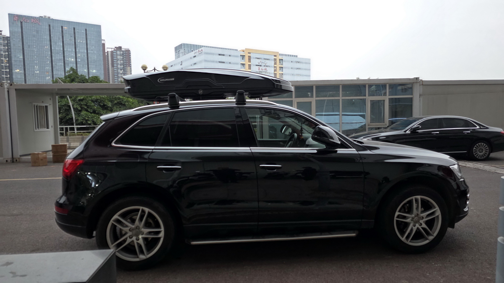 奥迪Q5安装案例,纽曼车顶箱G5B机甲风型,好品质好质感,配套安全牢固。