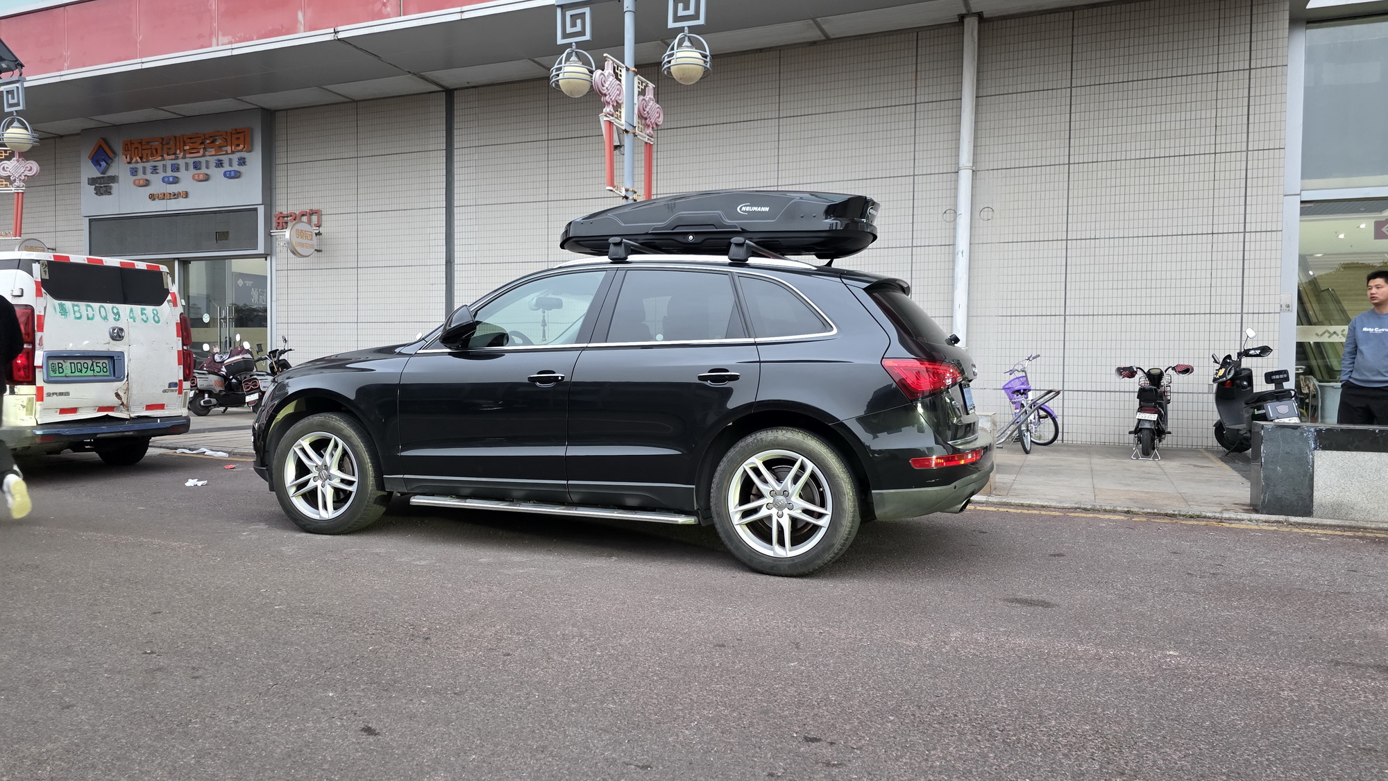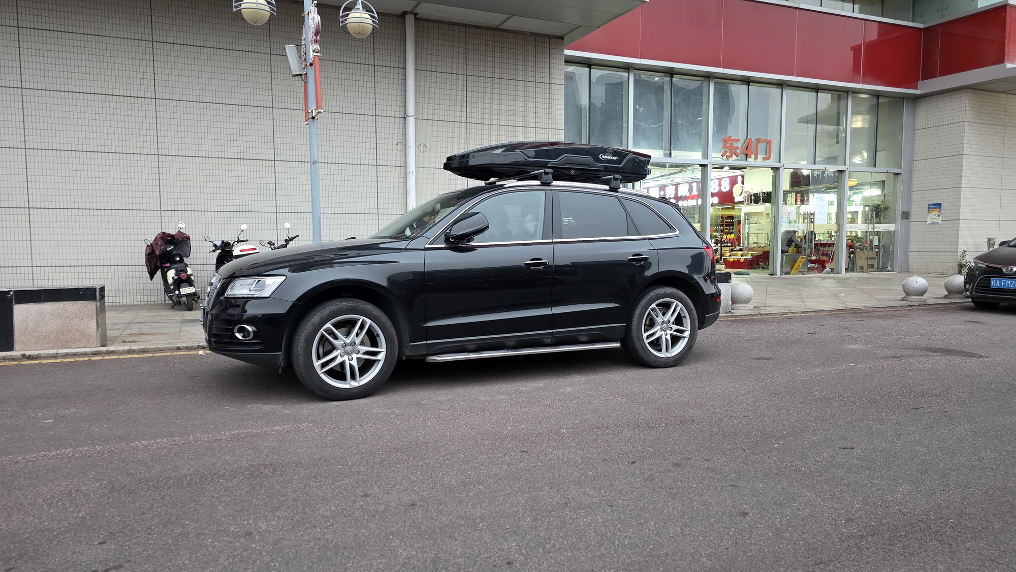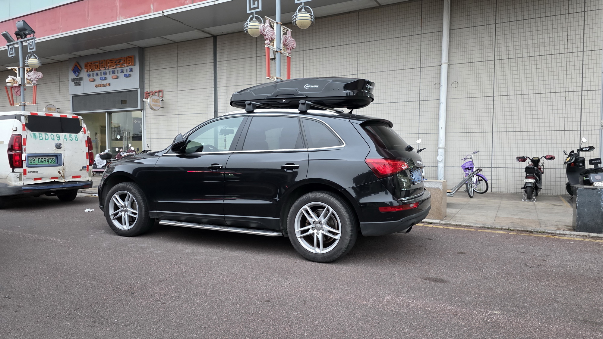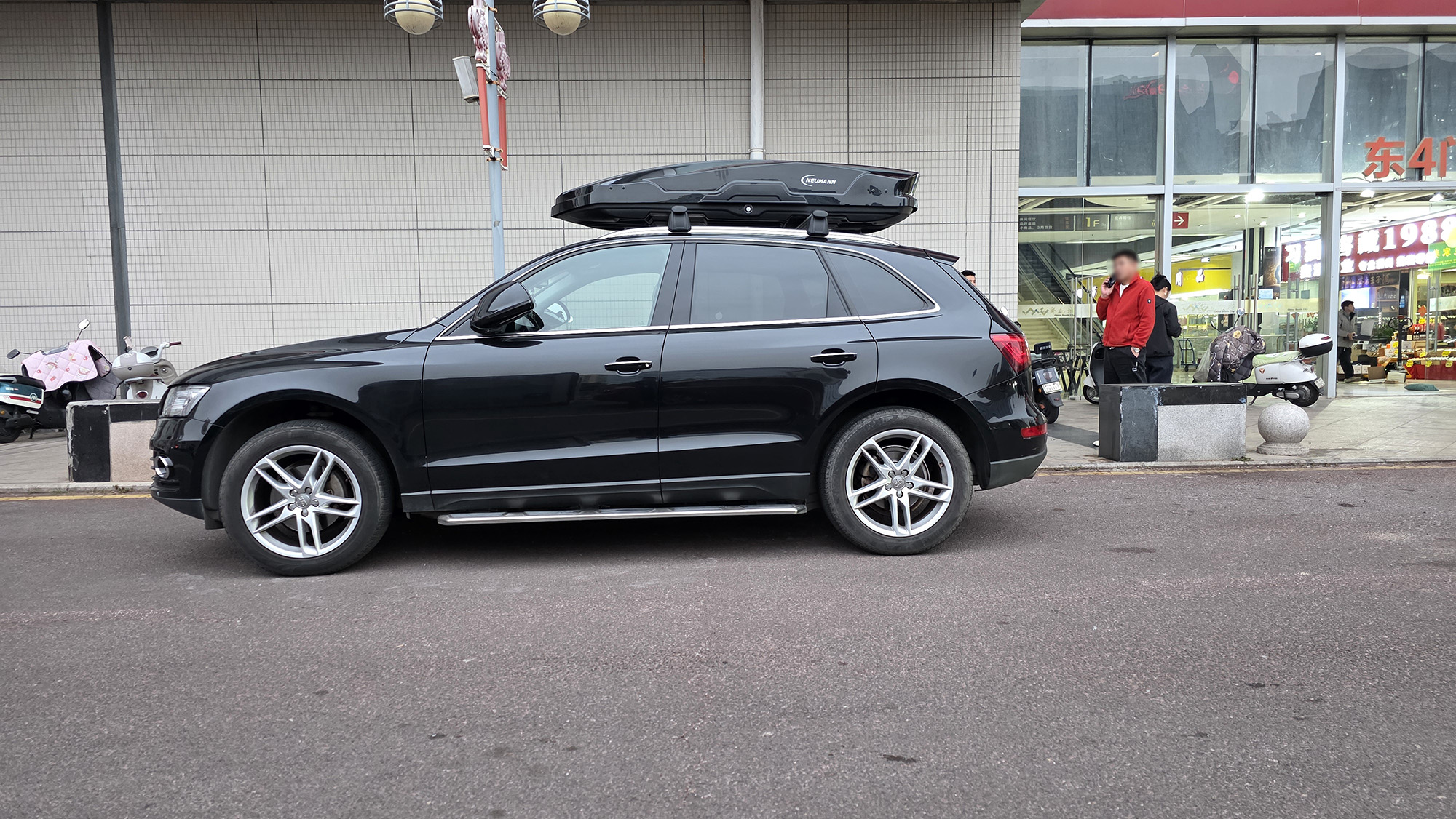 奥迪Q5安装案例,纽曼车顶箱G5B机甲风型,好品质好质感,配套安全牢固。