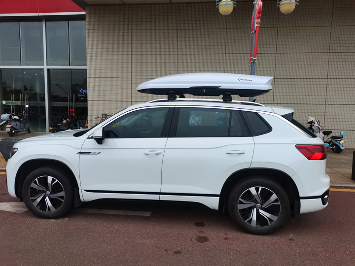 五一出行今天大众来安装了纽曼横杆纽曼车顶箱