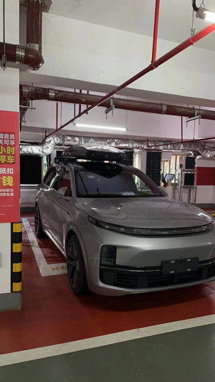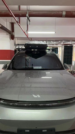 理想L9安装纽曼305s车顶行李架,纽曼K6行李箱 黑色,安装效果好,档次大气
