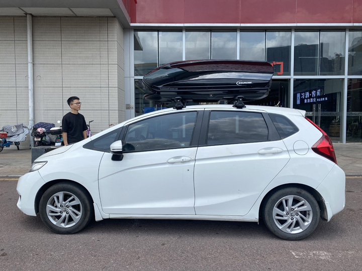 14款 三代飞度来安装纽曼305s车顶架,纽曼C5A车顶箱,吻合度强,专车专用