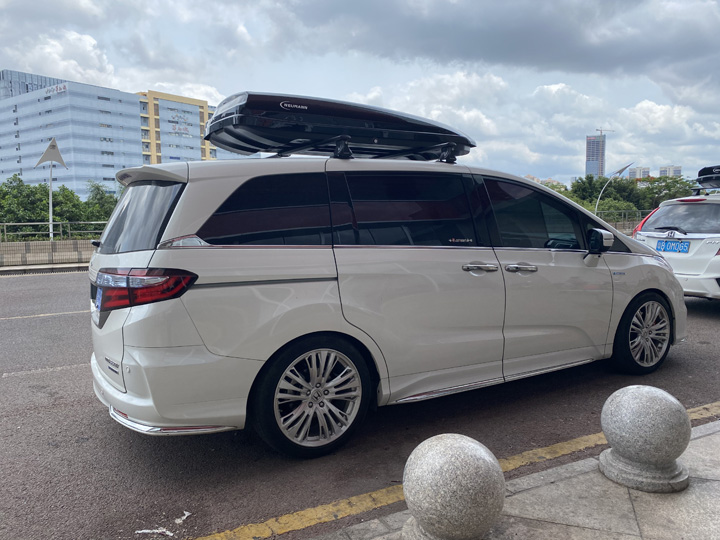19款奥德赛安装纽曼专用305s车顶架,纽曼F5车顶箱黑