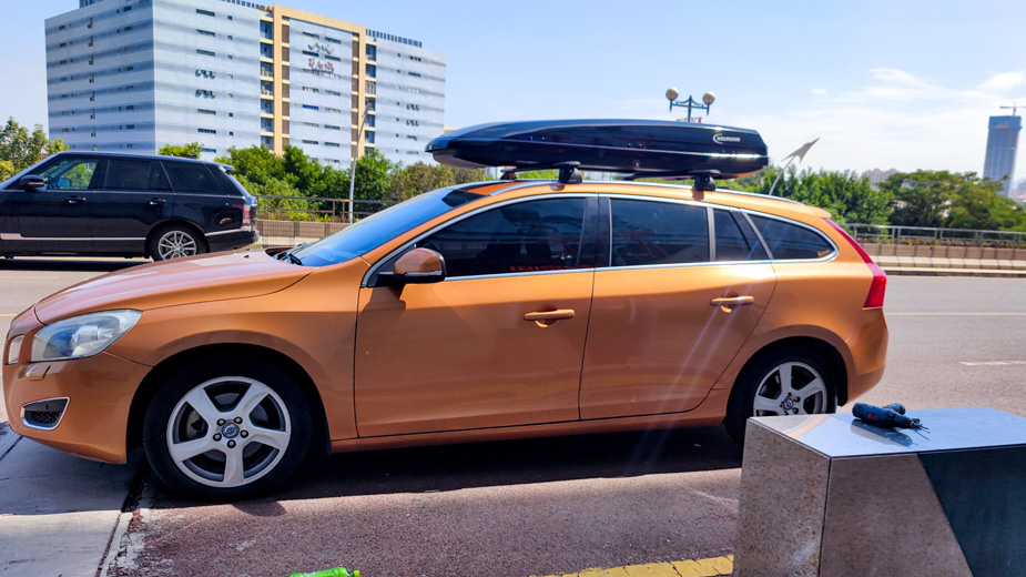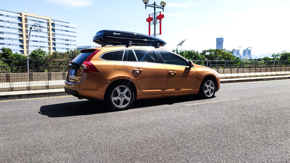 沃尔沃V60安装纽曼305s车顶架 车顶箱F5黑色