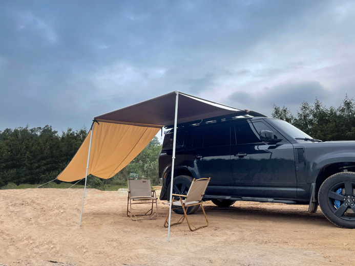 路虎卫士安装纽曼车边帐篷,到哪里露营都不怕雨晒啦