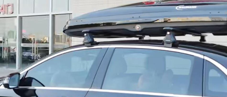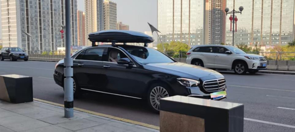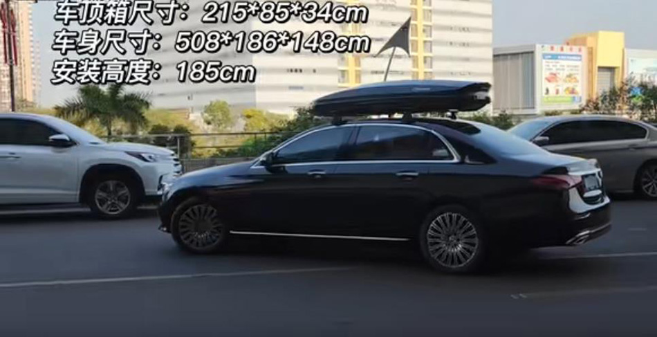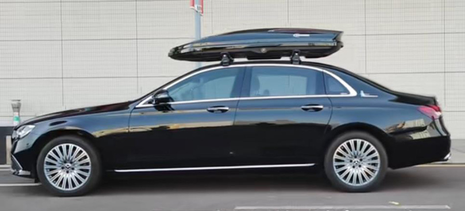 奔驰E级安装纽曼305s车顶架加长款车顶箱K6黑色 桥车型