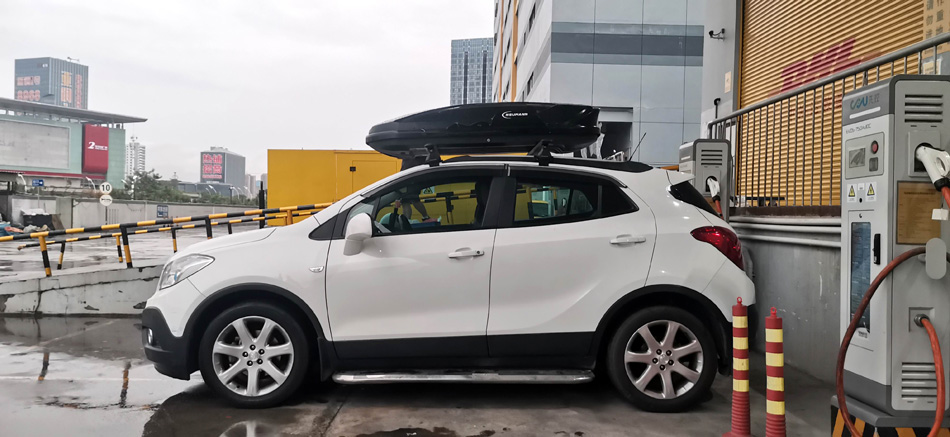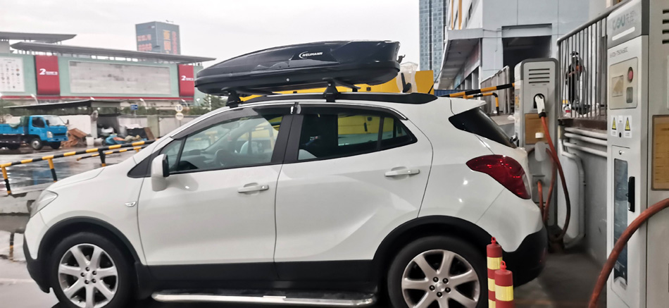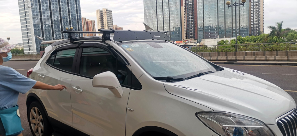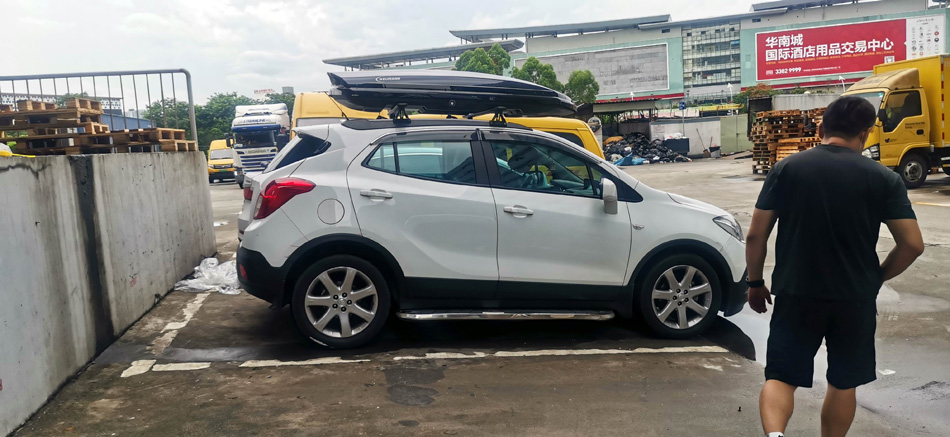 别克昂科拉安装纽曼305s车顶架 车顶箱扰流板 桥车型