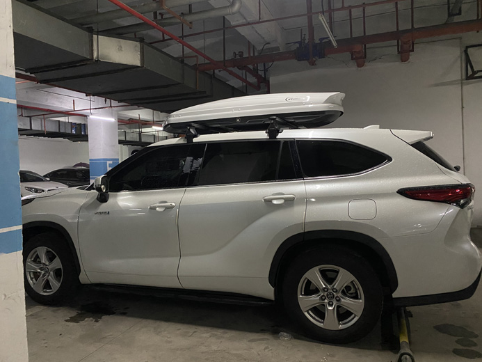 22款丰田 汉兰达安装纽曼305车顶架纽曼车顶箱G5白色