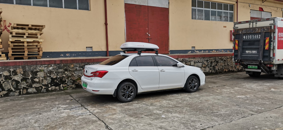 比亚迪秦搭载纽曼305s车顶架车顶箱A5 白色 桥车型
